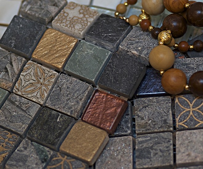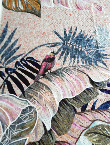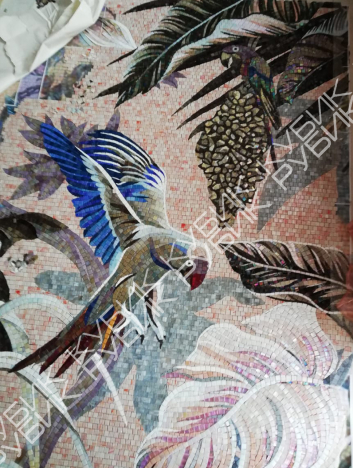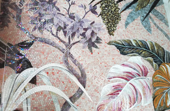 Материал изготовления мозаики (натуральный или искусственный): стеклянная (а также с примесью полудрагоценного камня авантюрина), каменная, мраморная, перламутровая мозаика, из дерева, ракушек, бамбука, скорлупы кокоса, других природных материалов; керамическая, из керамогранита, металла, нержавеющей стали.